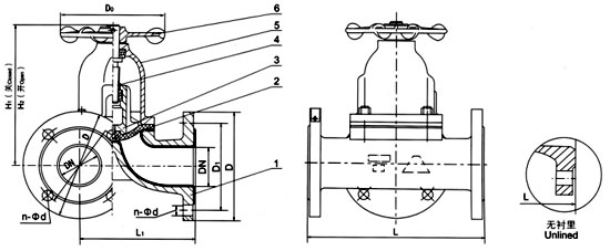 部件列表:1、閥體 2、隔膜 3、閥瓣 4、閥桿 5、閥蓋 6、手輪