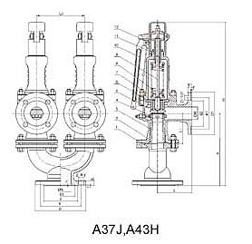 A38Y-16C/25/40、A43H-16C/25/40、A37H-16C/25/40雙聯(lián)彈簧式安全閥