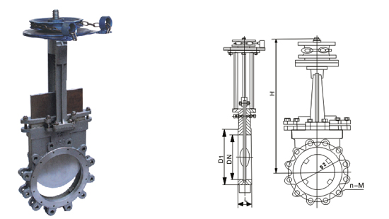 鏈輪對夾式刀形閘閥主要外形及連接尺寸