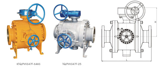 KTQ/B PCII347F-16C-DN200-AS K-表示抗硫,非抗硫不加;T-表示天然氣專用,非天然氣不加;B-表示保溫夾套;非保溫型不加;PV-表示清管裝置;II-表示帶旁通型/I表示標(biāo)準(zhǔn)型/III表示隔離型;3-表示蝸輪傳動;4-表示法蘭連接;7-表示固定球三通式;F-表示閥座密封PTFE/N-為尼龍;16-公稱壓力;C-表示碳鋼WCB/P不銹鋼CF8,DN200-公通徑;AS-表示防靜電結(jié)構(gòu),非防靜電不加。