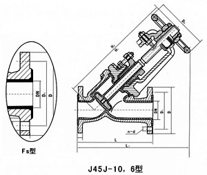 型號 公稱壓力PN(MPa) 試驗壓力PS(MPa) 適用介質(zhì) 工作溫度(℃) 殼體試驗 密封試驗 J45J/F46-6 0.6 0.9 0.66 W.非腐蝕性流體 ≤80 J45J/F46-10 1.0 1.5 1.1