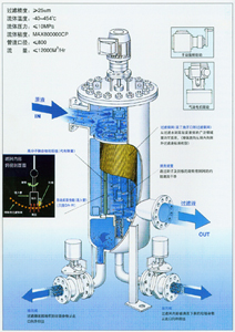 當(dāng)水流經(jīng)過(guò)過(guò)濾器時(shí),水中的機(jī)械雜質(zhì)被過(guò)濾網(wǎng)攔截,當(dāng)濾網(wǎng)表面積聚的雜質(zhì)增加而使壓差達(dá)到設(shè)定壓差時(shí),壓差開(kāi)關(guān)即發(fā)出信號(hào),同時(shí)PLC即發(fā)出指令,傳動(dòng)電機(jī)啟動(dòng),排污閥打開(kāi),沉積在濾網(wǎng)中的雜質(zhì)被轉(zhuǎn)動(dòng)的刷子刷下,從排污口排出,整個(gè)刷洗排污過(guò)程無(wú)須人員操作,無(wú)須停機(jī),同時(shí),該設(shè)備還設(shè)有定時(shí)清洗排污和手動(dòng)清洗排污功能,保證在任何情況下出水安全可靠。