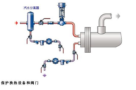 分離器用于聚集氣體/蒸汽流中內(nèi)含的小液滴并將之分離。相對較重的液滴在撞擊內(nèi)擋板后落入分離器排放接口由蒸汽疏水閥從系統(tǒng)中排除,如用于空氣或氣體分配系統(tǒng),則使用排液閥排除。